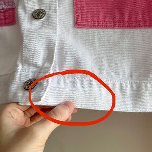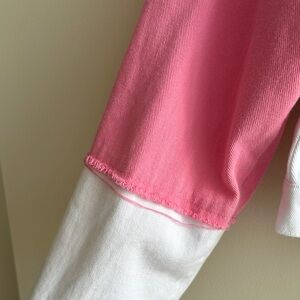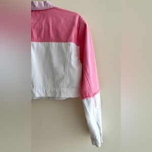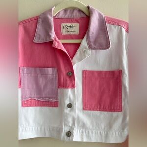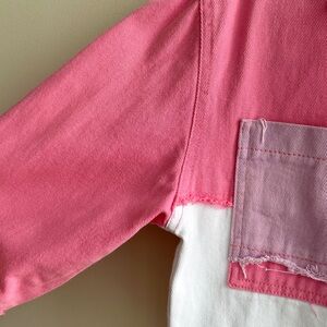 Robin Cropped Pink/White/Purple Patchwork Denim Jacket, Size EUR 40