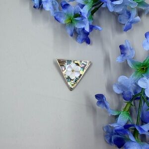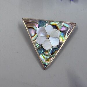Vintage 925 Sterling Silver Triangle Floral Abalone Brooch