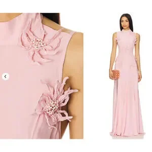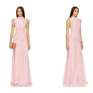 La Fuori Backless Maxi Dress in Ostrich Feather Pink XS NWT $780msrp