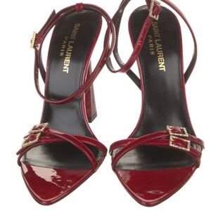 Brand new never worn gorgeous red patent leather heels with crystal embellished buckle perfect for every occassion!