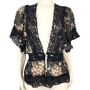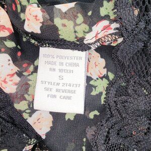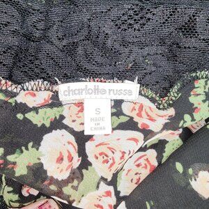 Women's Charlotte Russe Black Floral Lace Rose Buttons Romantic Sexy Small Blous