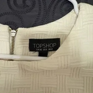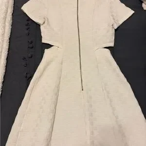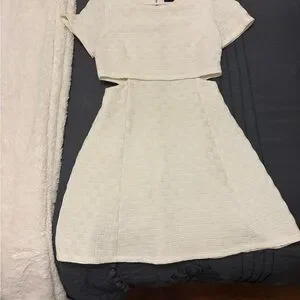 Elegant mini dress with a woven pattern. Features short sleeves and a flattering silhouette. Perfect for any occasion.