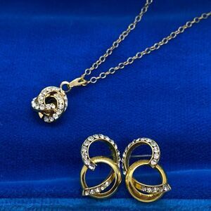💛 14k GF Swirl Crystal Necklace & Earring Set