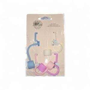 Set of four straw toppers with floral design. Includes white, blue, and pink colors.