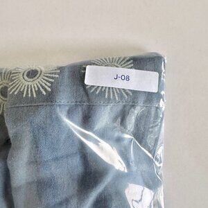 Color/Print: Dusty Blue Chambray with White Sunburst Embroidery