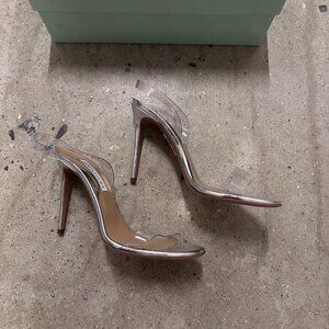 Aquazzura So Nude Plexi 105 Sandals Heels Silver