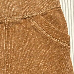 Heathered. Two front pockets, one zip pocket on the back. Drawstring at waist.