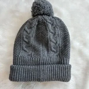 The North Face Womens Grey Cable Knit Fleece Lined Pom Beanie Hat One Size