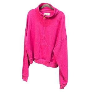 American Eagle XL Neon Hot Pink Quarter Zip Cropped Sweatshirt Pullover Boxy