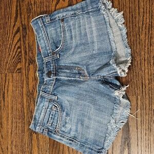 ***Please note that these shorts were jeans that I have cut and altered into shorts. There is stitching to reinforce the fraying at the hem.***