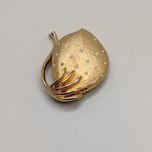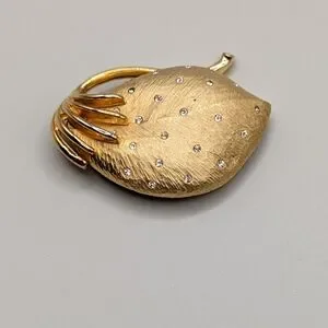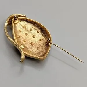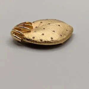 Vintage Florentine Finish Crystal Studded Strawberry Brooch. Great pre-owned vintage condition with very mild overall wear.