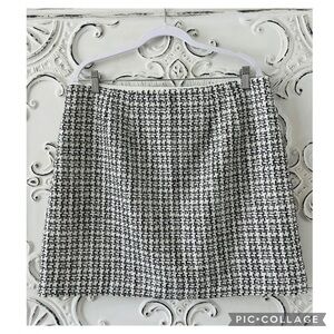 LOFT METALLIC SEQUIN TWEED SKIRT BLACK WHITE OFFICE PROFESSIONAL AFTER HOURS