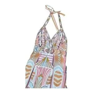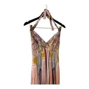 Multicolor Patterned Women's Lined Halter Maxi Dress Size Small 💯% Rayon