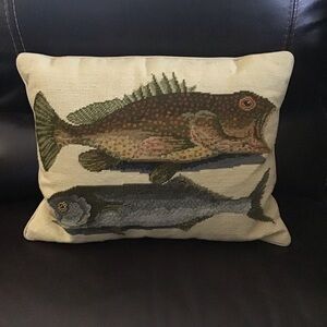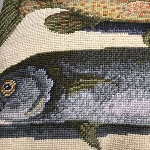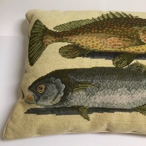 Needlepoint Throw Pillow Two Fish Bahamas Mark Catesby 16x20 Wool Velvet Zip Sea