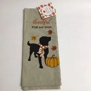 NEW - Thankful For My Dog Fall Kitchen Towel 100% Cotton Autumn Hand Tea Farmhouse.