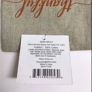100% cotton. Machine wash. Approx. 15โ x 25โ. Made in India.