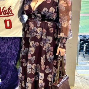 Baltic Born Burgundy and Blue Floral Long Sleeve Dress