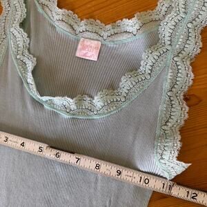Baby blue lace trim tank top with lettuce hem. VS Angels 2005. Immaculate, likely only worn once. Size large