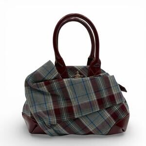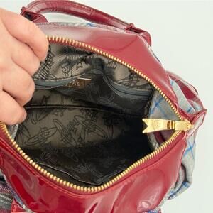 Vivienne Westwood Plaid Multicolor & Burgundy Patent Leather Handbag