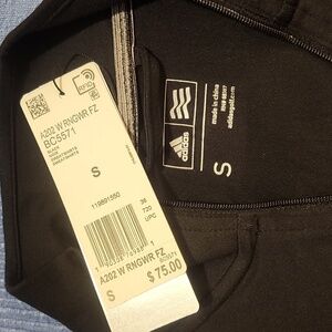 Chic black jacket with stylish striped accents. Ideal for outdoor and workout adventures. Comfortable lightweight and sleek design.