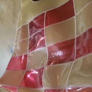 EUC Chanel Windowpane Tan & Raspberry Naked Bag