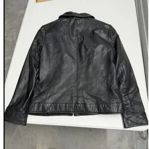 Leather Limited Black Genuine Leather Jacket Leopard Print Lining Womens Medium