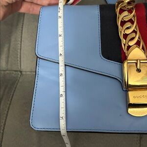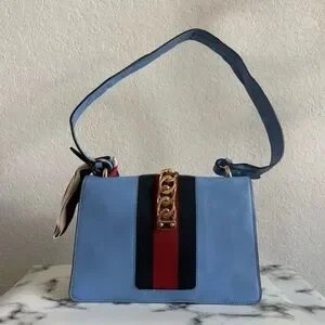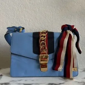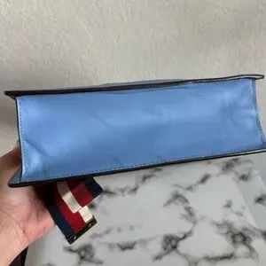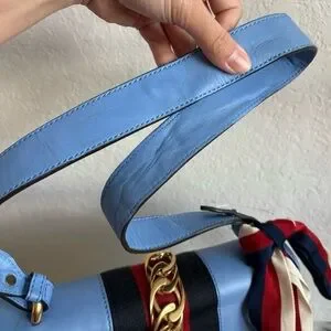 Gucci Sylvie Light Blue Crossbody Bag with Red and Gold Details