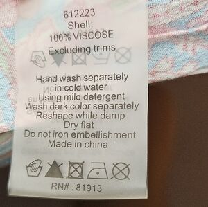 Fabric: 100% viscose. Lightweight and perfect for spring & summer.