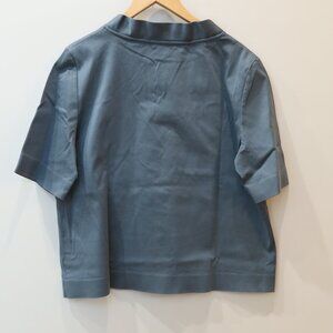COS teal green top 100% cotton mock neck classic minimalist lagenlook layer M