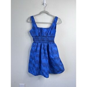 Maeve Anthropologie Smocked Mini Dress Women's S Blue Square Neck Sleeveless Cotton