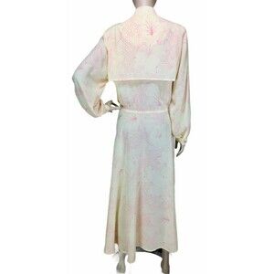 tags: romantic, church, secretary, day dress, modest, wedding guest, safari, drawing sketch, abstract, rare, hard to find, long, maxi, vented, balloon sleeve,