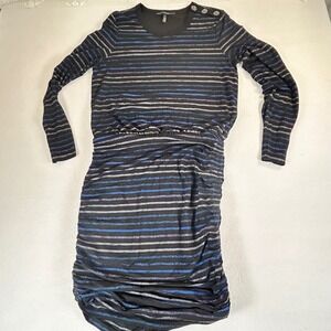 White House Black Market Metallic Striped Ruched Dress Blue Black Silver Mens M