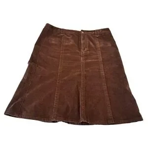 Eddie Bauer Corduroy Skirt Womens 12 Brown Back Pockets Knee Length A Line Flare