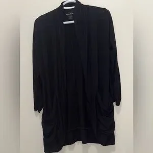 Stylish black open front cardigan with long sleeves by made in heaven. Perfect for layering.