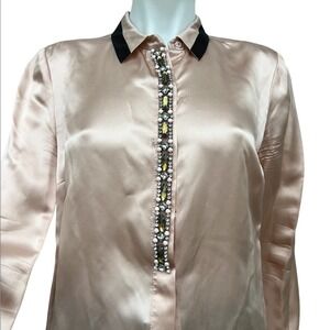 Tory Burch Silk Beaded Crystal Collar Long Sleeve Blouse Shirt Size 12