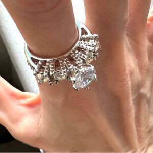 rhinestone bling statement ring approx Sz 6 NWOT diamonds silver princess wedding cz