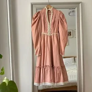 The most gorgeous salmon pink color midi dress from Gunne Sax.