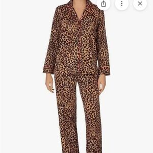 Stylish leopard print pajama set. Features a classic button-up top and matching pants. Perfect for a cozy night in. NWOT. Size medium.