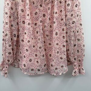 Loft Petite Pink Daisey Ruffle Tie Neck Long Sleeve Blouse Sz SP