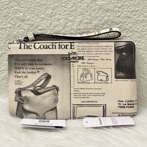 NWT Coach Large Corner Zip Wristlet With Newspaper Print CDE80 in Chalk Multi