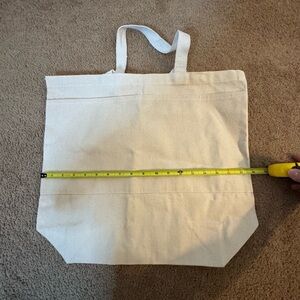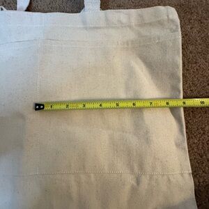 Large handmade Yoga large canvas tote bag. Had two large pockets in the back. See photos for measurements. Perfect for workouts or everyday errands.