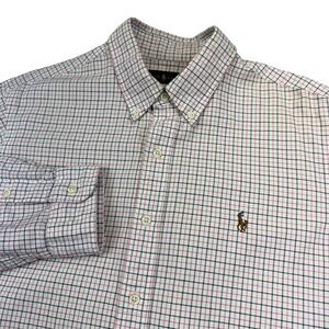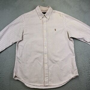 Ralph Lauren Shirt Mens Large Pink Blue Plaid Check Button Down Cotton Oxford