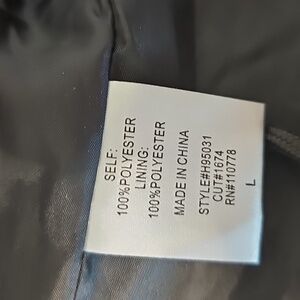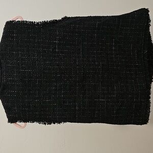 Excellent preowned condition. Black boucle fringe gold button up vest. Button flap pockets on chest & lower front. Polyester material. Approx. measurements: Shoulder to hem 26 , pit to pit 21 . Size L.