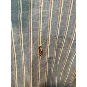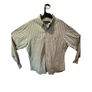 Ralph Lauren Polo Shirt Mens Large Blue Striped Classic Fit Button Up Brown Pony