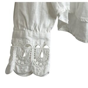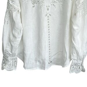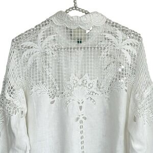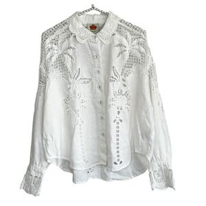 Farm Rio White Palms Linen Top XS Cottage Sheer Lace Embroidered Long Sleeve NEW