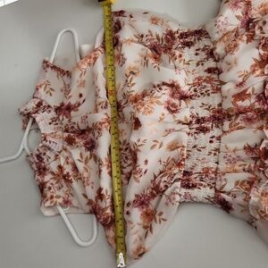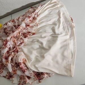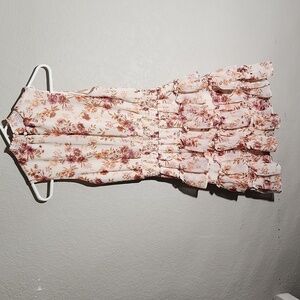 1 State Dress Womens Floral keyhole back with 2 button neck button tall neck sleeveless ruffeled layered skirt size M
