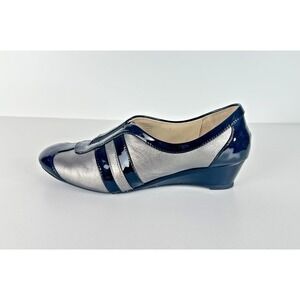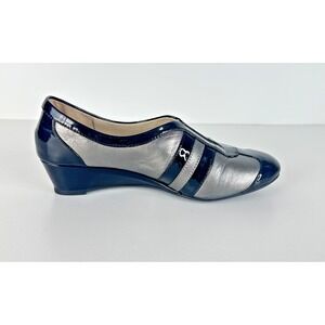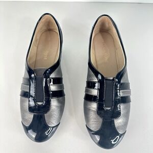 Taryn Rose Paislee Striped Wedge Sneaker Black Gray Leather Slip On Womens 7.5M