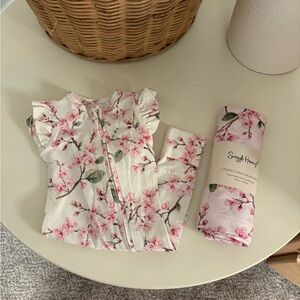 Floral newborn footie & swaddle blanket (NWT) bundle