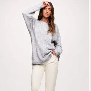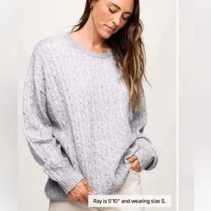 he Cozy Knit Cable Crewneck Sweater is a timeless knit designed for everyday comfort and effortless styling. Featuring a classic cable knit texture and a relaxed, boxy fit, this cozy sweater delivers warmth without feeling bulky. The drop-shoulder silhouette and soft hand feel create an easy drape that works just as well styled loose as it does with a front tuck. Whether paired with denim, trousers, or layered for cooler days, this women’s sweater brings versatility, comfort, and elevated knitwear style to your daily rotation.