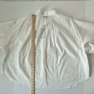 NWT Chic white shirt with button-up front. High-low hem. Lightweight poplin. Oversized; very wide, modern boxy fit that drapes nicely. Comes from a pet-free and smoke-free home.